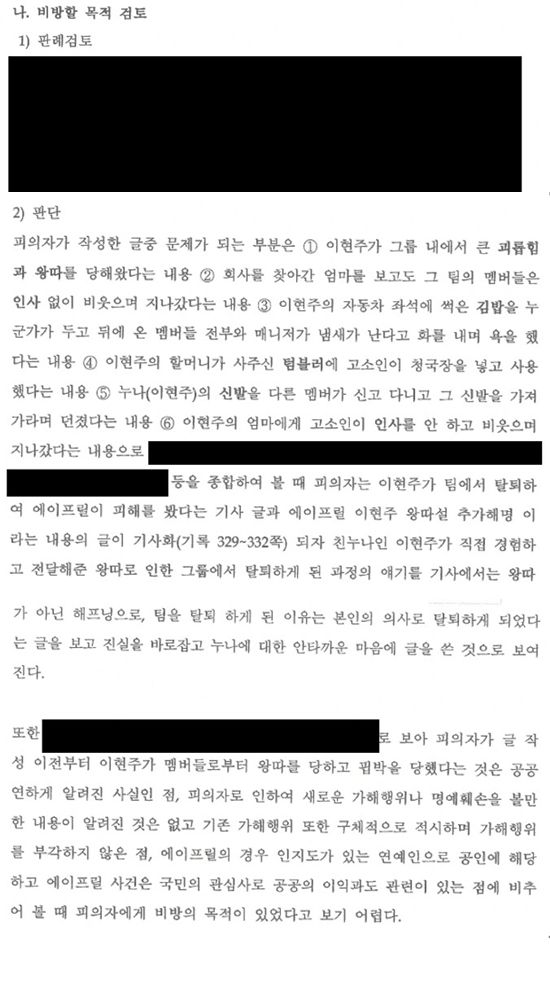 여기에서 왕따가 맞다는 여부가 판단이 불분명하다는 표현이 나오는 것은 맞습니다. 그렇지만 일반적인 인간관계의 문제점, 이 부분이 괴롭힘이 없었다는 것과 동일시되어서는 안 될 것 같고요. 아까 말했듯 불송치 결정문이 이것으로 대체되는 게 아니기 때문에 여기 나온 주요 사실이 인정되고 허위가 아니라는 부분 역시 그대로 남아있다는 점도 생각해볼 필요가 있습니다.