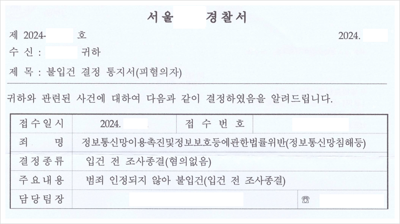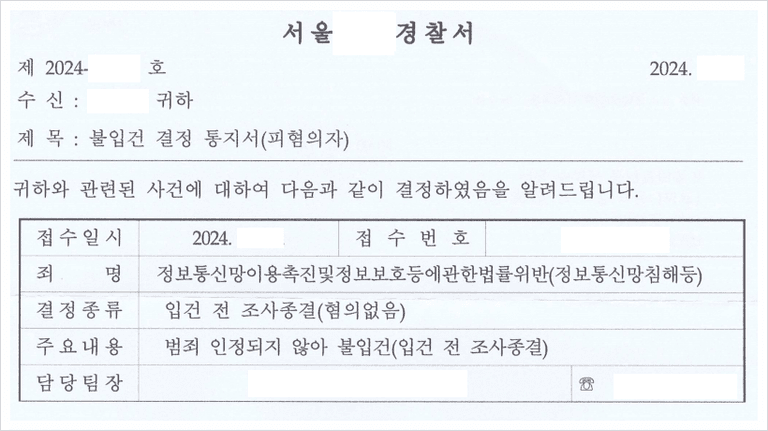 정보통신망법과 관련하여 경찰서로부터 고소 연락을 받으신 분들에게 도움을 드리고자, 억울하게 정보통신망침해 혐의로 고소당하였으나, 이를 무혐의 종결로 성공적으로 방어해낸 사례를 소개해드리고자 합니다.