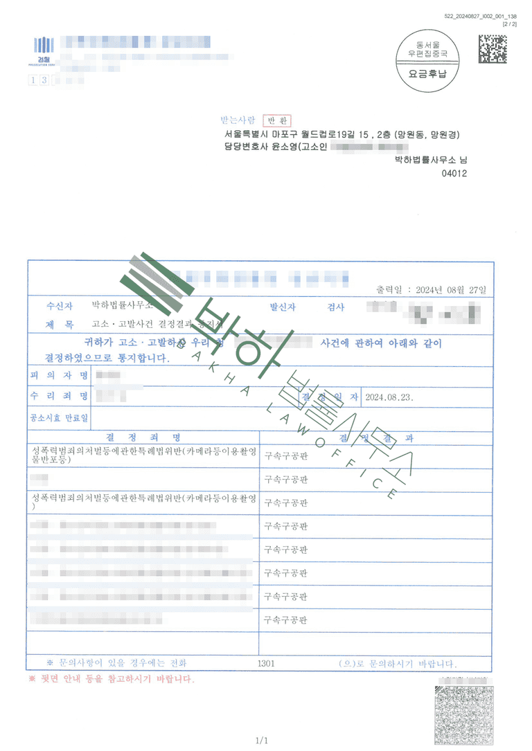 또한 윤소영 변호사는 담당 수사관과의 적극적인 소통으로 포렌식 조사 결과 가해자가 단순 촬영이 아닌 유포까지 한 점, 다수의 추가 피해자가 존재하는 점 등 가해자의 죄질이 매우 나빠 구속 수사로 진행될 필요성을 지속적으로 어필하였습니다.