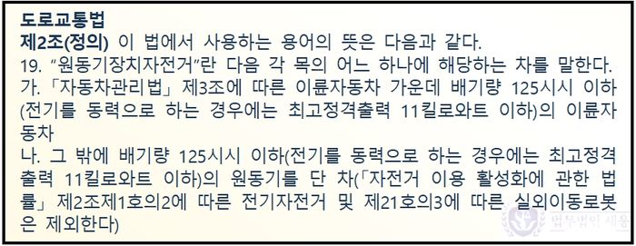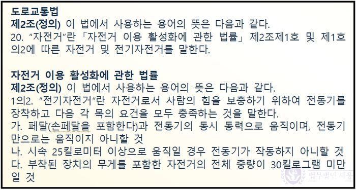 한편 최근 이용자가 증가한 전기자전거 역시 일정한 기준을 충족하지 못하면 원동기장치자전거로 분류가 됩니다.