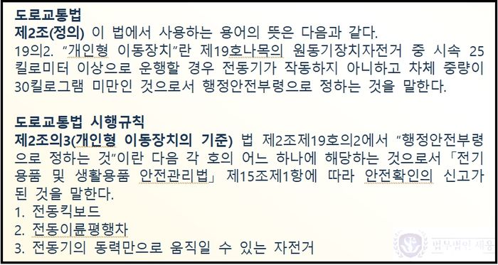 따라서 이 포스팅에서는 원동기장치자전거, 전기자전거, 개인형 이동장치의 구분에 대해서 알아보고, 추가로 각각의 이동수단에 대한 법규위반 행위와 처벌도 정리해 보겠습니다.