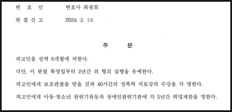 법원은 원만하게 합의가 된 점, 범행 후 의뢰인의 태도 등과 같이 의견서에 기재된 내용을 수렴하여 징역 6월에 집행유예를 선고하였습니다.