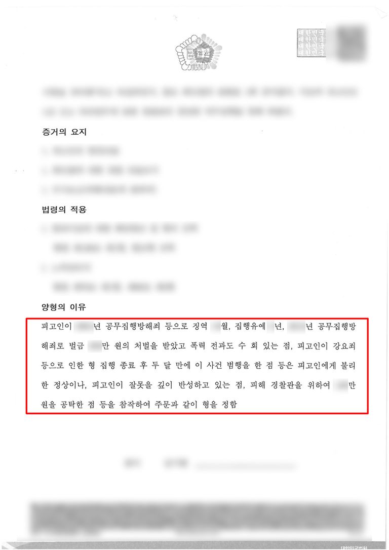 1. 2번의 공무집행방해, 폭력전과 3차례, 강요죄로 실형 살고 누범 기간.