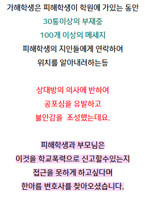 예전에 진행했던 학교폭력 스토킹 사건으로 신고를 당한