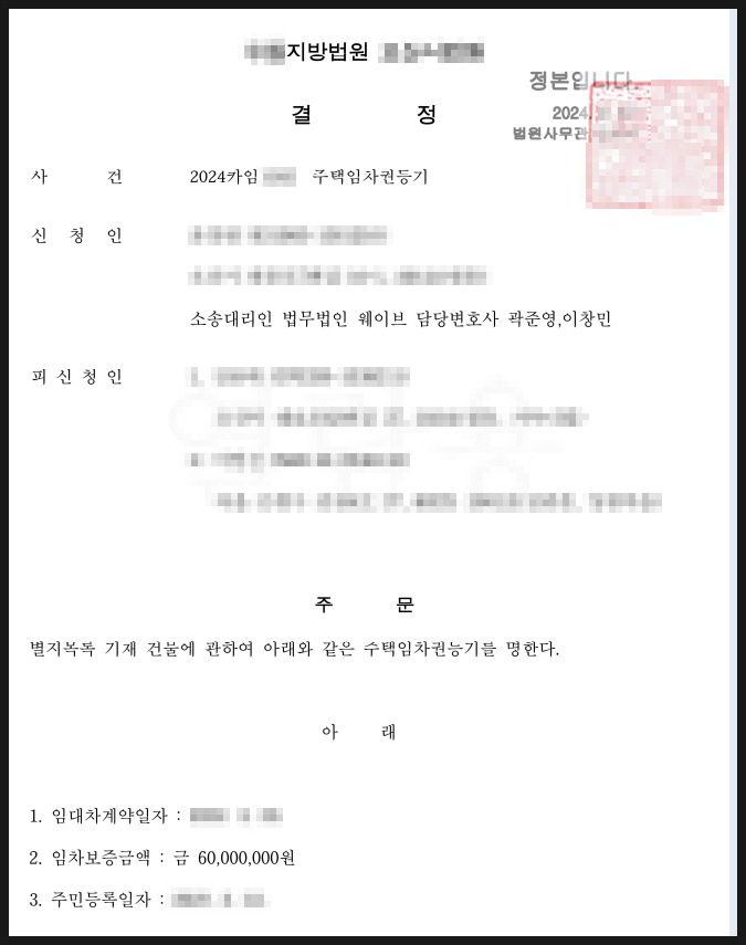그런데 약간의 사실관계상 불리한 부분이 있었지만 재판부를 잘 설득하여 임차권등기명령을 받아낼 수 있었던 사건입니다.