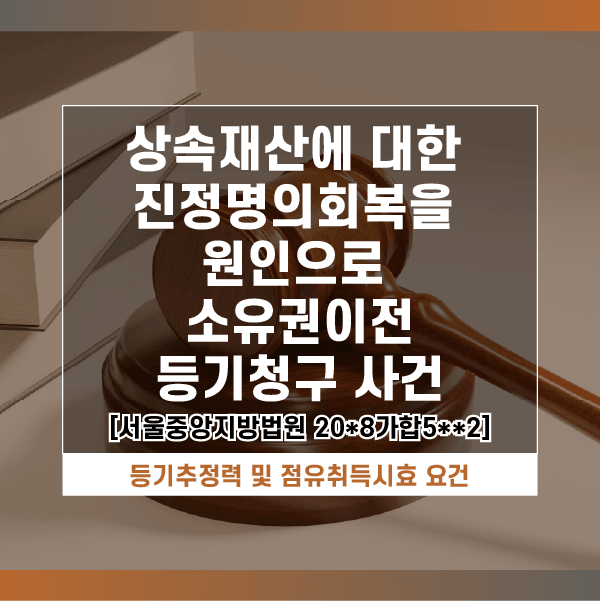 이와 같이 상속인들이 상속재산에 관하여 진정명의회복을 원인으로 한 소유권이전등기청구소송을 제기하자 피고인 삼촌은 등기추정력을 주장하면서 이미 40년 전에 등기가 이루어진 이후 40년 동안 삼촌이 점유하여 왔으므로 점유취득시효가 완성되었다고 항변하였습니다.