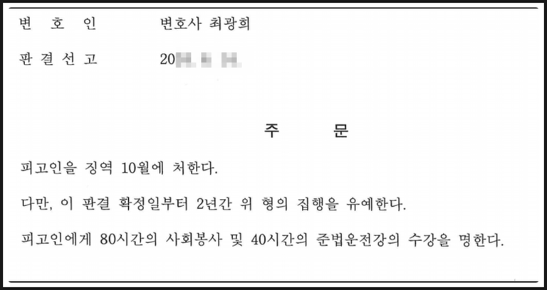 법원은 제가 제출한 변호인 의견서의 주장을 받아들이고 피해자들과 합의가 된 점을 참작하여 집행유예를 선고하였습니다.