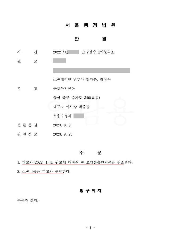 법률사무소 지담에서 진행한 요양불승인처분 취소소송 승소사례를 소개합니다.