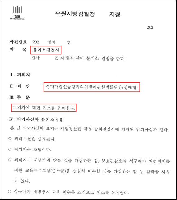 다행히도 이 사건은 의뢰인의 신속한 변호인 선임 및 변호인의 적절한 대응을 통해 '장애인강간' 혐의를 벗겨내고 축소사실인 '성매매'에 대해서도 기소유예를 받아 처벌을 면한 사안으로, 매우 결과가 좋은 성공적인 사례입니다.
