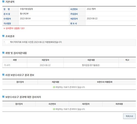 불기소처분(혐의없음)