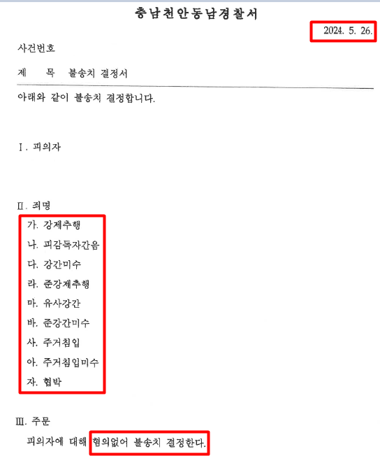 참고해서 불송치 결정서 작성하겠습니다”