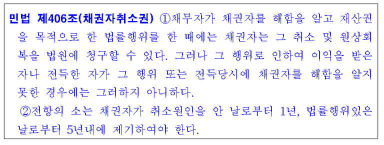 채권자취소권과 관련한 내용들은 앞으로 차근차근 살펴 보겠습니다.