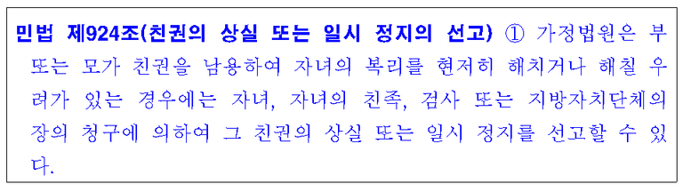 친권 상실도 이런 맥락에서 고민해 봐야 할 문제입니다.