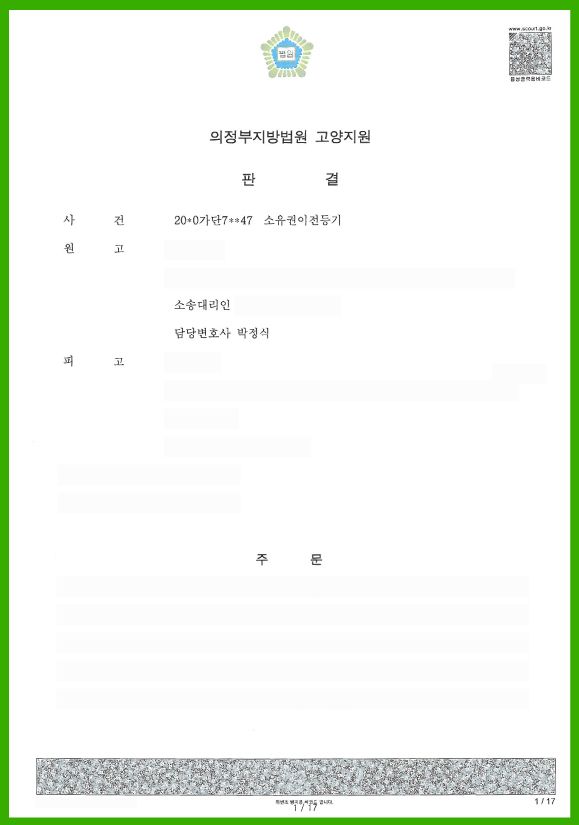 위 사건에 대하여 의정부지방법원 고양지원 재판부에서는,