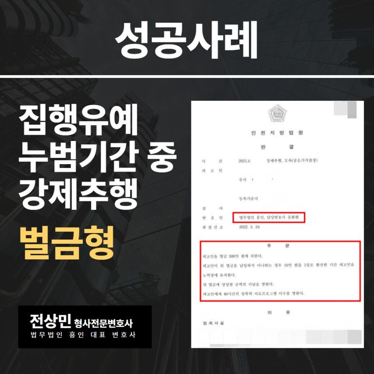 이번 사안은 의뢰인이 집행유예 누범 기간 중 강제추행을 하였던 만큼, 재판부에서는 처음 실형을 선고하려고 하였지만, 다행히도 본 변호인의 조력을 받아 좋은 결과로 마무리 지을 수 있었습니다.