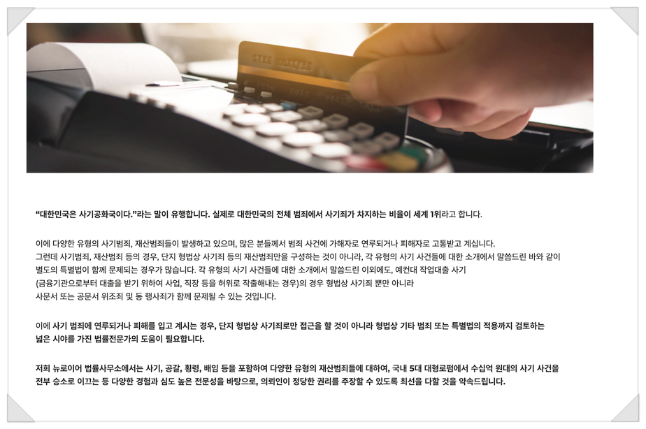 안녕하십니까? 사이버 범죄 특화 로펌 뉴로이어입니다.