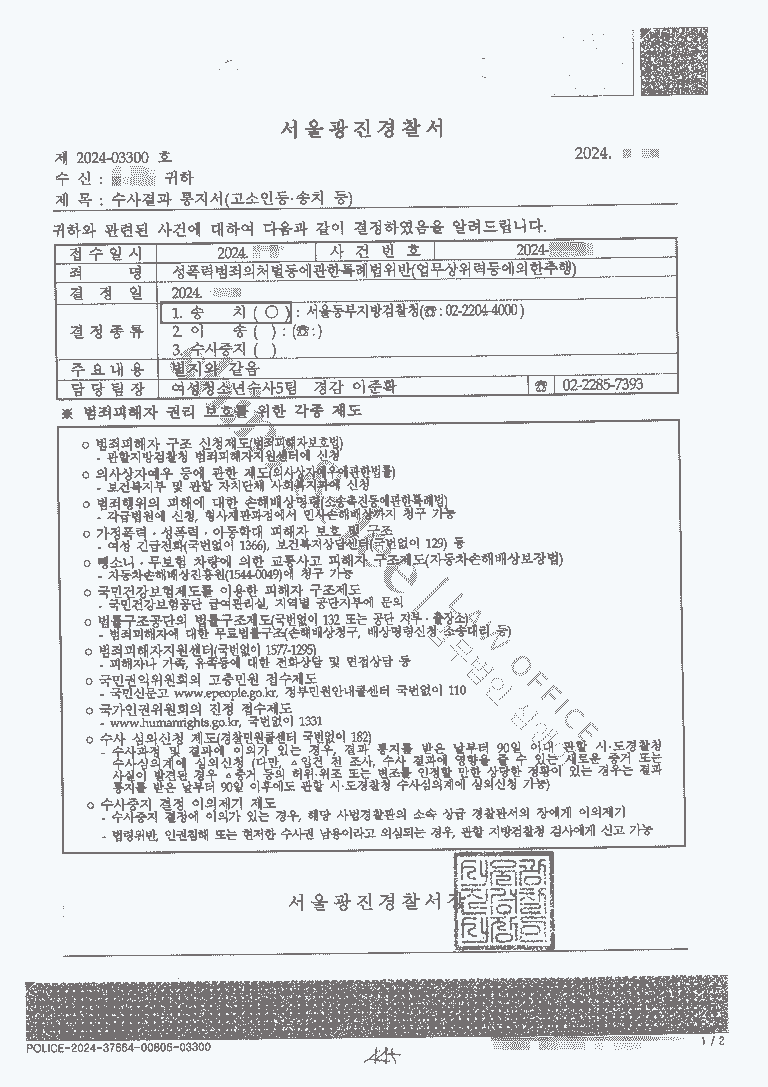 - 경찰에서는 가해자가 진료행위를 빙자하여 업무상의 지위를 통해 피해자를 추행했다는 사실을 인정하고 기소 의견으로 송치하였습니다. CCTV가 없는 밀폐된 공간에서 범죄를 입증해 내기 어려운 사건이었지만, 심앤이의 발 빠른 증거 입수와 철저한 경찰 조사 진술 대비를 통해 가해자를 업무상 위력 등에 의한 추행으로 송치시킬 수 있었습니다.