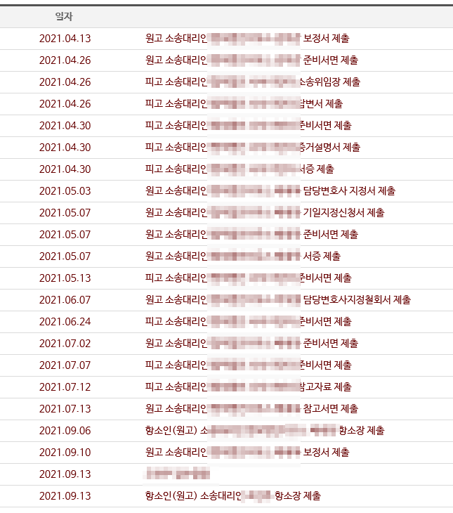 서면이 유난히 많이 제출되는 사건의 경우 양측 다 15회 정도의 서면을 제출했습니다.