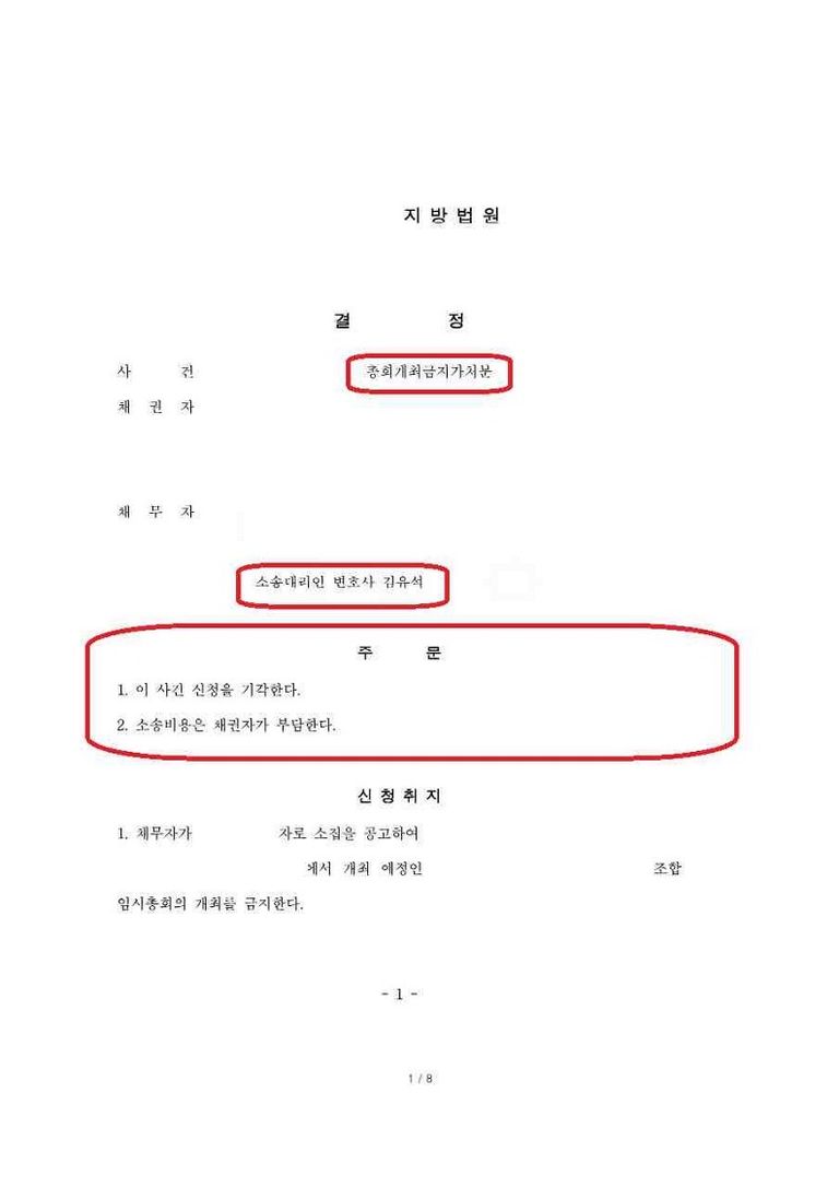 보통 조합 임원들의 해임과 관련된 임시총회개최가 진행될 때, 이를 금지하여 달라는 임원들의 총회개최금지가처분이 종종 있는데, 이를 잘 방어하여 기각시킨 사례입니다.