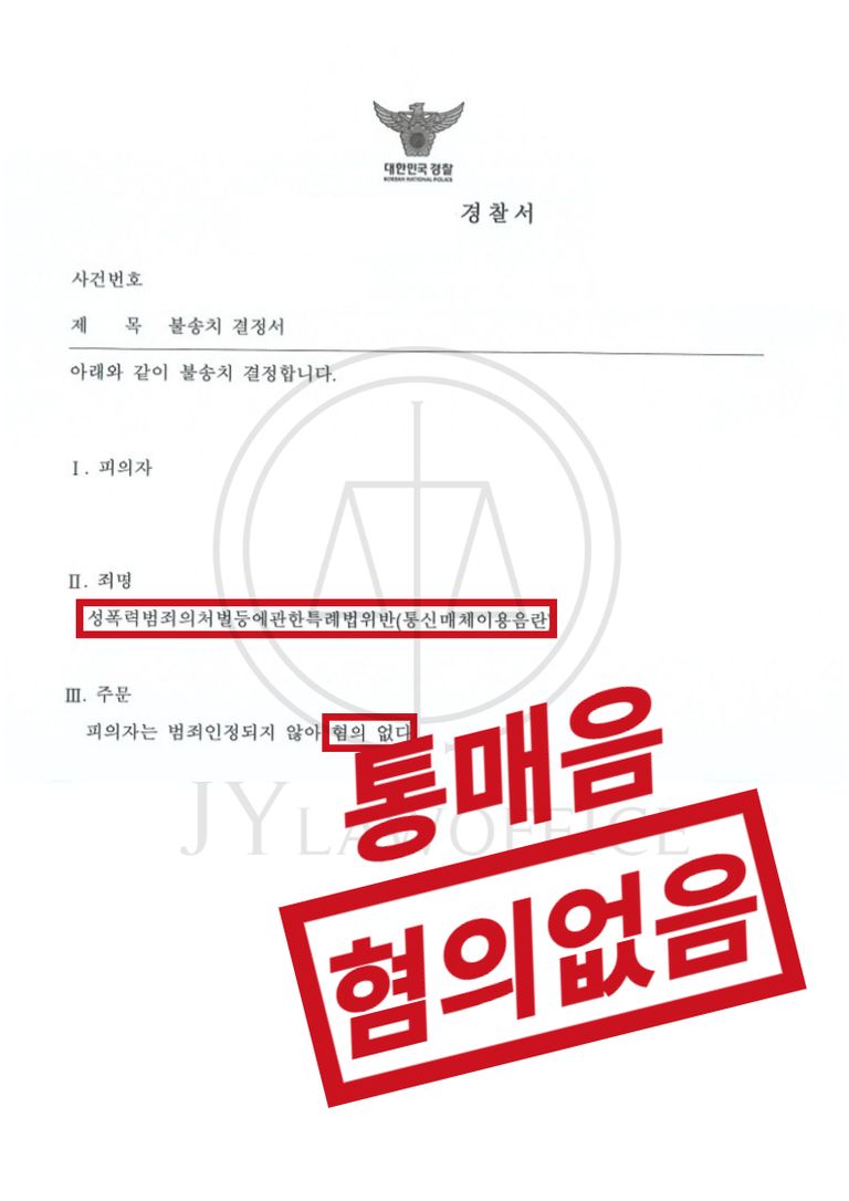 이러한 변호인의 노력에 따라, 의뢰인은 '혐의없음'을 처분받고 무사히 사건을 종결시킬 수 있었습니다.