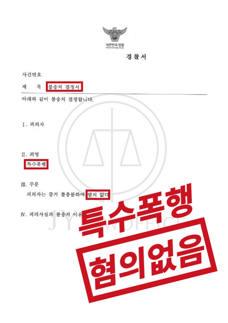 이와 같은 변호인의 조력에 의뢰인은 수사 단계에서 불송치(증거불충분)의 처분을 받아 재판 없이 사건을 마무리할 수 있었습니다.