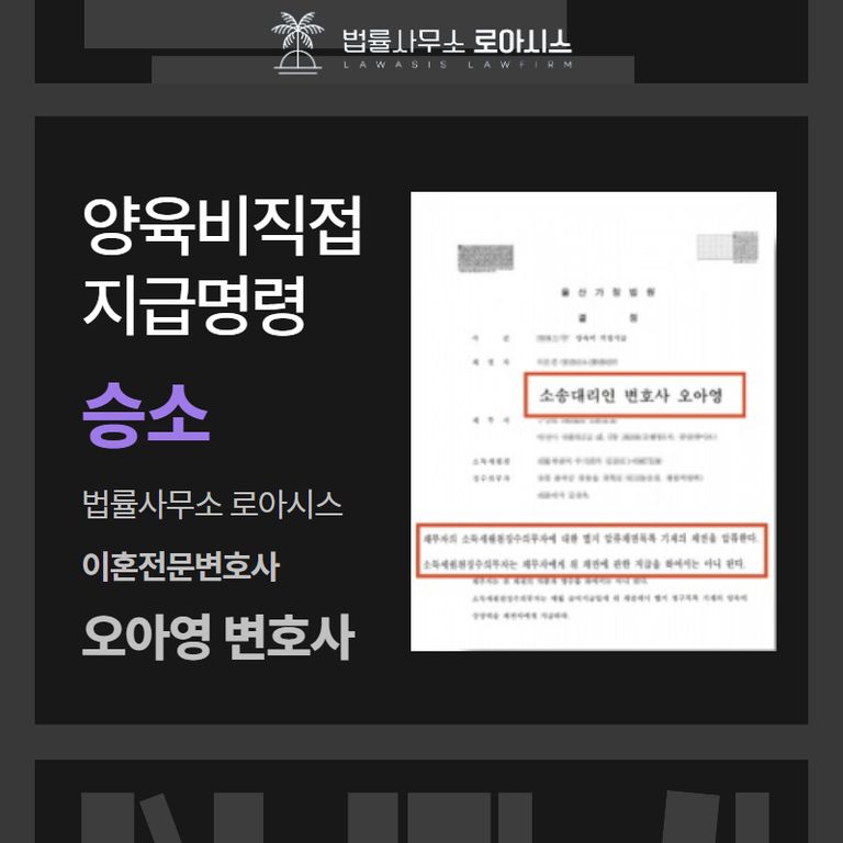 다만 법원에서는 저의 주장을 받아들여 과거 비용에 대한 이행명령 인용뿐만 아니라 재직회사에 대한 양육비 직접지급명령 승소 판결이라는 결과를 이끌어낼 수 있었습니다.