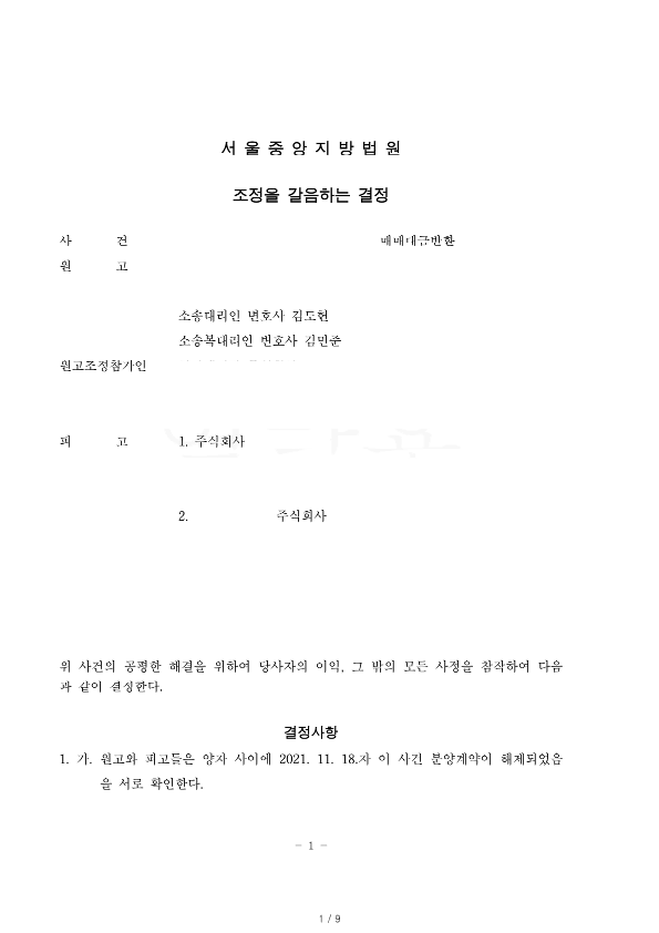 결국, 소송 진행 중에, 조정을 갈음하는 결정에 따라 조정이 성립한 사건입니다.