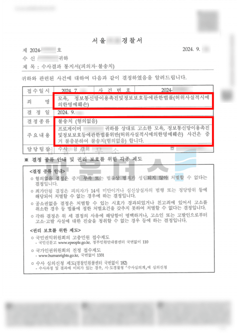 그 결과 의뢰인은 게임 커뮤니티에서 고소인을 향한 비방성 글을 업로드 한 모욕ㆍ명예훼손 사건에 있어 불송치 결정으로 경찰 단계에서 사건을 종결할 수 있었습니다.