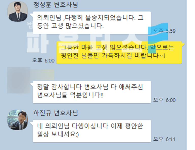경찰조사를 앞둔 시점 변호인은 조사 진술 시 예상되는 질문과 답변의 내용을 정리하여 안내하였고 조사 당일 의뢰인과 동석하여 답변에 어려움을 겪을 시 옆에서 모니터를 통해 조력을 드렸습니다.