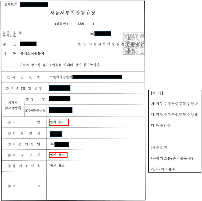 - 사건 전체에 대한 혐의없음 및 기소유예 처분으로 사건 종결