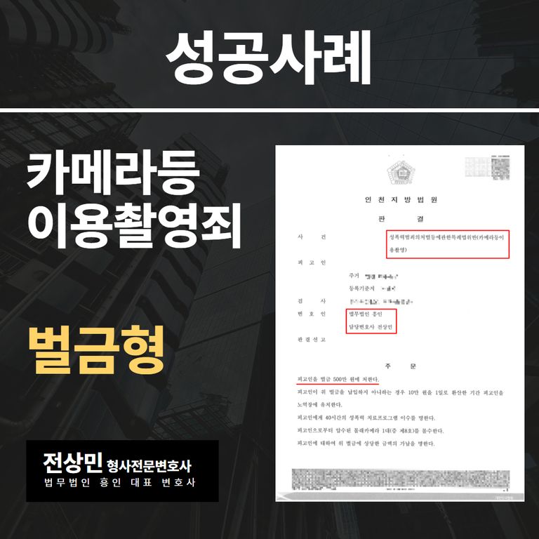 따라서, 지금부터 “카메라등이용촬영죄, ‘벌금형’으로 구제받은 사례”를 소개해 드릴 테니, 이 글을 읽어보시고, 도움이 필요하시다면, “성범죄 전문 전상민 변호사”에게 상담을 요청하셔서 법적인 조력을 받으시길 바랍니다.