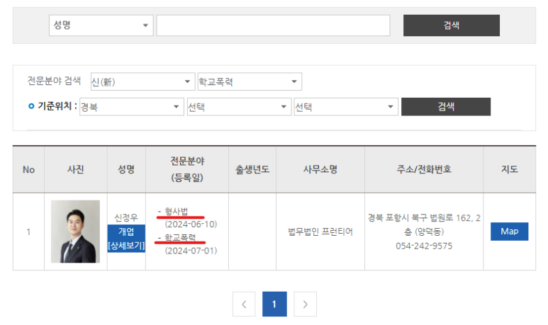 경북, 포항 지역에서 대한변호사협회에 정식으로 학교폭력전문변호사로 등록된 변호사는