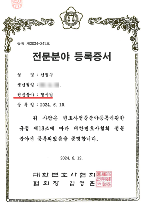 대한변호사협회에 정식 등록된 형사법 전문 변호사이고,
