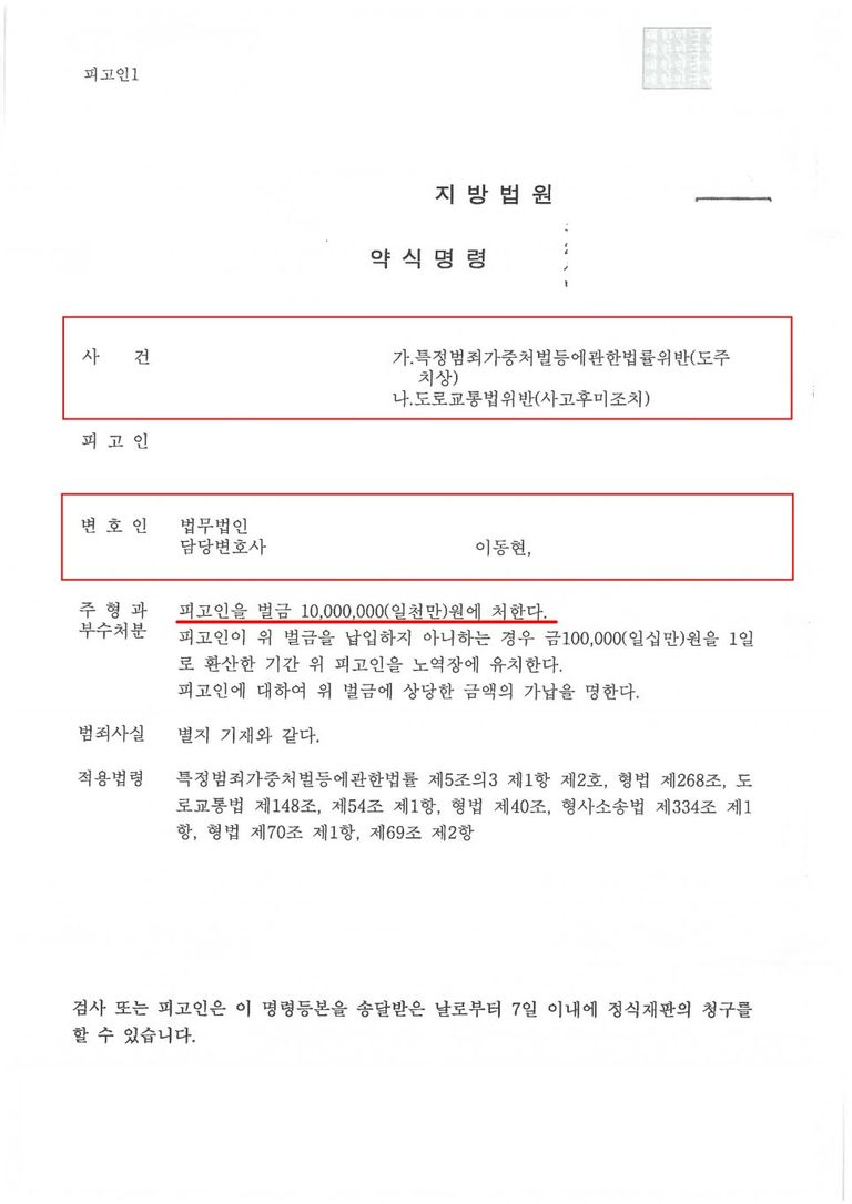 제가 담당했던 이 사건은 도주치상과 사고후미조치라는 중대한 혐의가 인정되었으나, 초기부터 잘 대응하여 약식명령(벌금형)으로 잘 마무리 되었습니다.