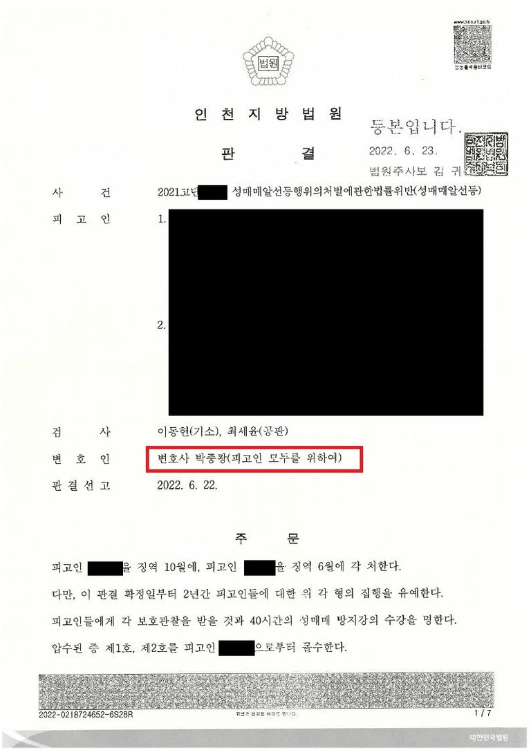 변호사를 선임한 시점에 성매매 여성 조사 및 계좌 조회 등 이미 대부분의 수사는 마무리가 된 상태였습니다. 다만, 추징금을 최소로 산정하기 위해 업주(4회차)와 실장(2회차)의 마지막 조사에 변호사와 동석하여 불리한 진술을 최대한 억제하였습니다. 결국, 재판에 이르러 검찰은 114,750,000원 추징을 구하였습니다.
