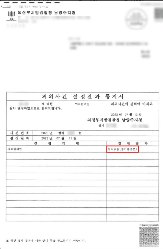 이에, 건강보험심사평가원에서 의료 전문변호사 출신이었던 김도헌 변호사는, 수사기관에 의료법위반이 아님을 수사절차에서 적극 해명하였고, 결국 보완수사 끝에 무혐의 결론을 받아낼 수 있었습니다.