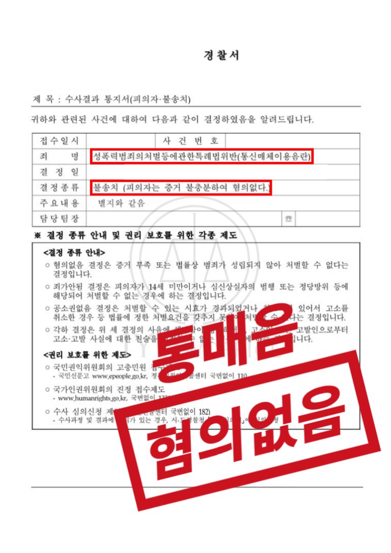 이러한 변호인의 노력에 따라, 의뢰인은 '혐의없음'을 처분받고 무사히 사건을 종결시킬 수 있었습니다.