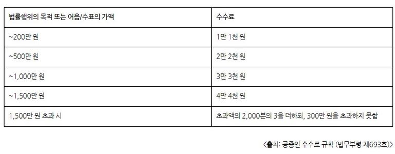 법률행위에 관한 증서에 대한 수수료는 다음 표를 참고하여 주시기를 바랍니다.