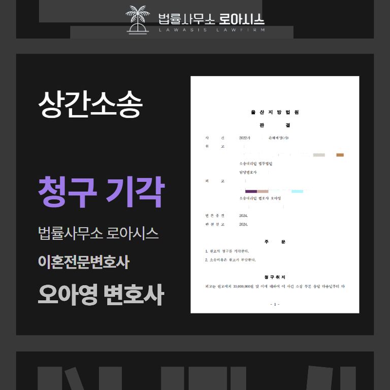 안녕하세요. 법률사무소 로아시스 이혼전문변호사 오아영입니다.
