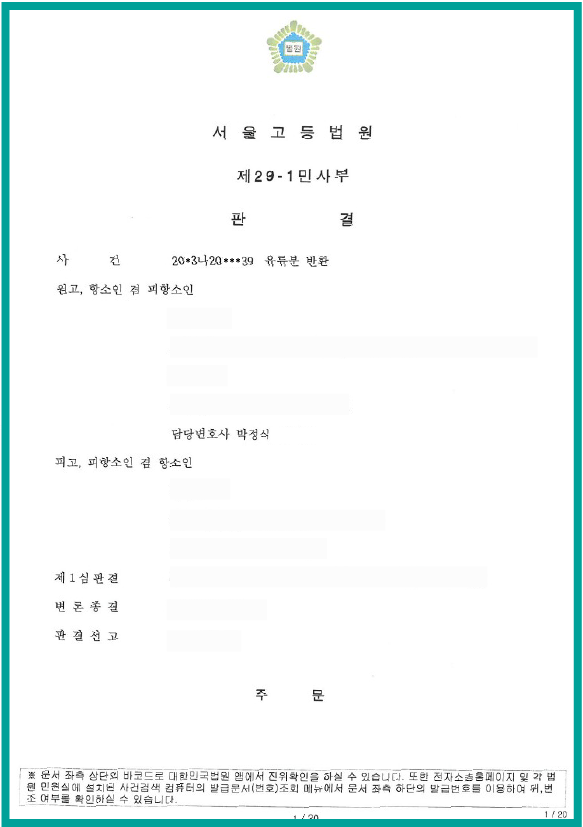 피상속인인 모친에게는 2남 2녀의 자녀가 있고, 부친께서는 이미 사망하였습니다. 모친 생전에 차남이 모친을 모시고 산다는 이유로 차남은 모친의 재산을 관리하면서 모친의 은행계좌에서 인출한 돈으로 생활하였습니다. 모친 소유의 단독주택을 증여를 원인으로 자신의 명의로 이전하였고, 결국 모친 사망 이후에 장남은 차남을 상대로 유류분반환청구를 하였습니다. 1심 재판부에서 차남인 모친 계좌에서 인출하여 간 일부 금액만 차남의 특별수익으로 인정하고, 차남이 증여받은 단독주택에 대해서는 차남이 기여를 하였다는 이유로 차남의 특별수익에서 제외 유류분기초재산가액에서 제외되었습니다. 이에 장남이 항소를 하면서 2심 소송대리를 맡아서 진행한 사건이었습니다.