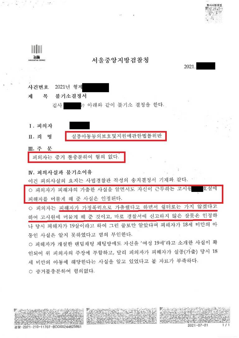 1. 의뢰인은 독서실에서 총무일을 하면서 공시를 준비하는 성실한 젊은이였습니다. 의뢰인은 친구가 '갈 곳이 없는 친구가 있는데 며칠만 재워줬으면 좋겠다'고 하여 승낙하였고, 소개를 받고 보니 가정 폭력으로 집을 나온 19세(피의자가 알기론) 여성이었습니다. 경찰에 신고하여 쉼터로 보내려고 하였으나 가출 여성이 부탁으로 신고하지 않고 독서실 빈방을 내주어 며칠 지내게 하였습니다. 여성은 의뢰인의 독서실에 지내면서 생활비를 벌기 위하여 랜덤채팅 앱으로 성매매를 하는 것으로 보였고, 불시에 나갔다 들어오거나 나가서 며칠 있다가 다시 독서실에 들어오곤 하였습니다. 한편, 의뢰인은 독서실 주인이 독서실 운영 상태를 점검하러 나온다는 연락을 받고 가출 여성에게 방을 비워달라고 요청하였습니다. 이때문에 여성은 의뢰인과 좋지 않은 감정으로 헤어졌고, 경찰에 검거된 이후 의뢰인에 대하여 부정적인 언급을 하여 피의자로 입건되게 하였습니다.
