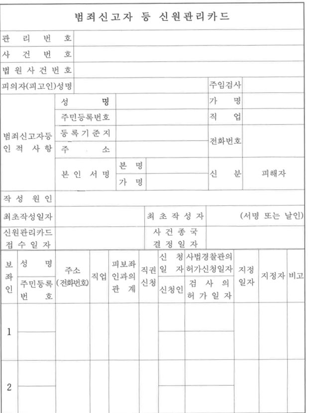 신원관리카드는 수사나 재판에 꼭 필요한 경우와 같이 매우 제한적으로