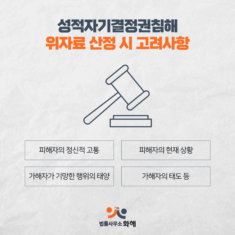 법원에서는 성적자기결정권 침해에 대한 위자료 산정 시 아래와 같은 사항을 종합적으로 고려해 결정을 내립니다.