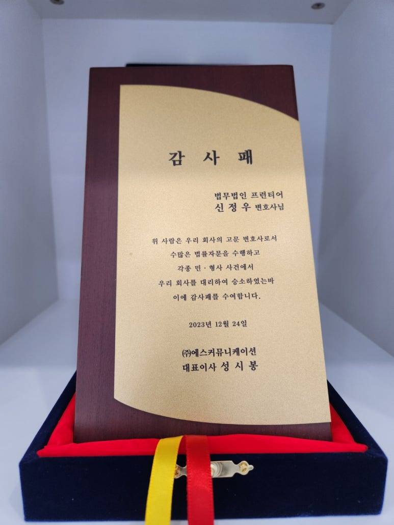 포항학교폭력변호사 신정우 감사패