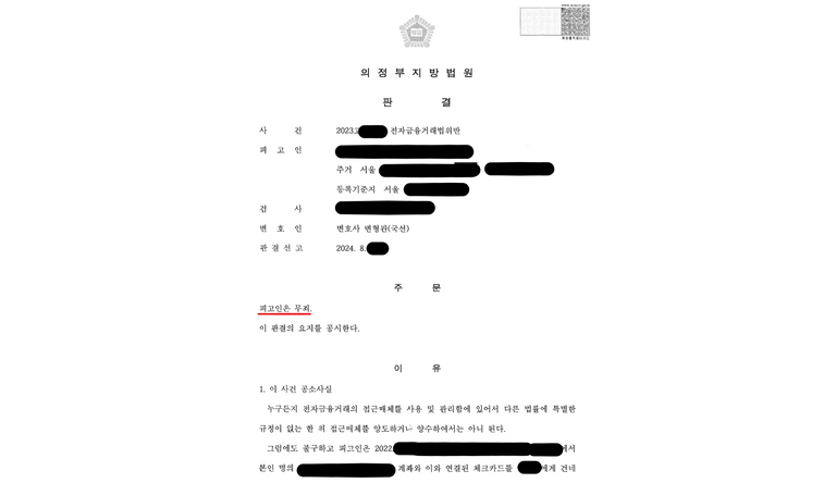 ![[무죄] 전자금융거래법 위반](/_next/image?url=https%3A%2F%2Fd2ai3ajp99ywjy.cloudfront.net%2Fuploads%2Ftitleimage%2Foriginal%2F5f103f6632ce3e02d8e86bb4-original.jpg&w=3840&q=75)