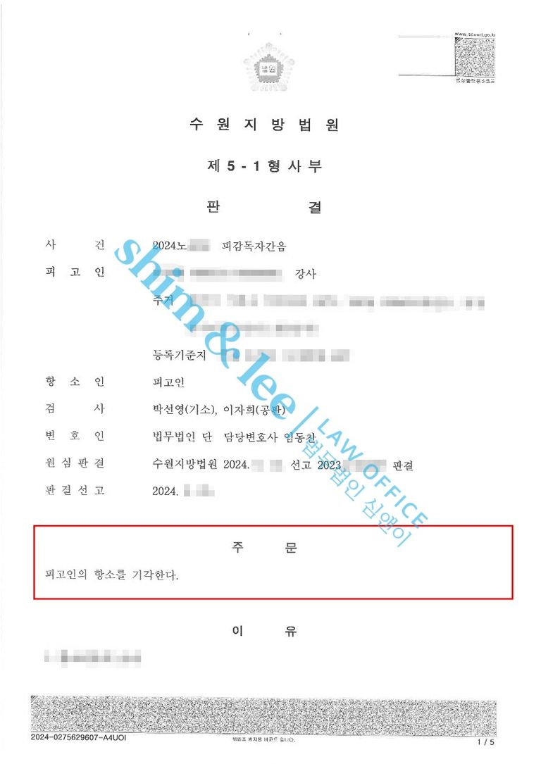 - 이러한 결과에 가해자 측은 항소하였지만, 심앤이는 2심 또한 철저히 준비하여 항소기각 결정이 내려졌습니다.