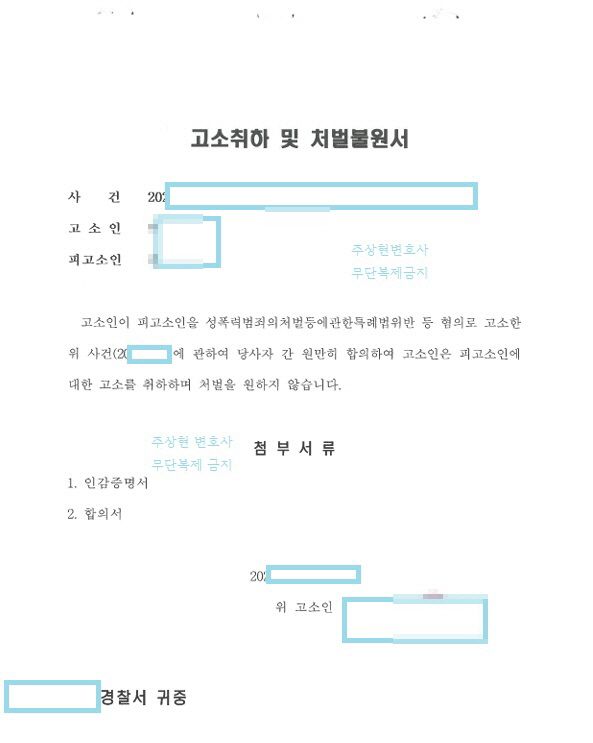 그 후 상대방은 수사기관에 '고소취하 및 처벌불원서'를 제출하였습니다. 그 직후 수사기관은 위 형사사건에 대해 불송치 결정을 하면서 형사사건이 완전히 종결되었으며 이 무렵 관련 민사사건도 동시에 종결되었습니다.