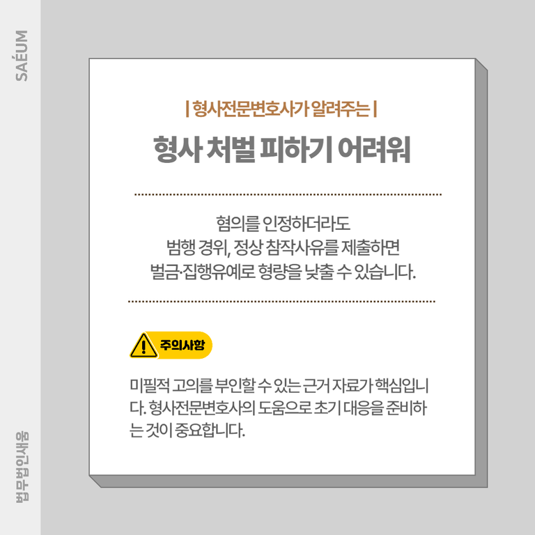 또한, 혐의를 인정하더라도 범행 경위와 정상 참작 사유를 제출하면 형량을 낮출 수 있습니다. 신속하게 법률 상담을 진행하여 미필적 고의 여부를 확인하고 대응에 나서는 것이 중요합니다.