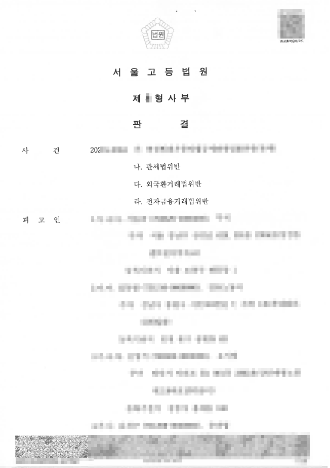 관세법위반(금괴 밀수) 사건의 1심에 수백억원의 추징금이 선고되었던 의뢰인들을 변호하여, 항소심에서는 원심을 파기하고 추징금에 대해 선고유예로 감형 받았습니다