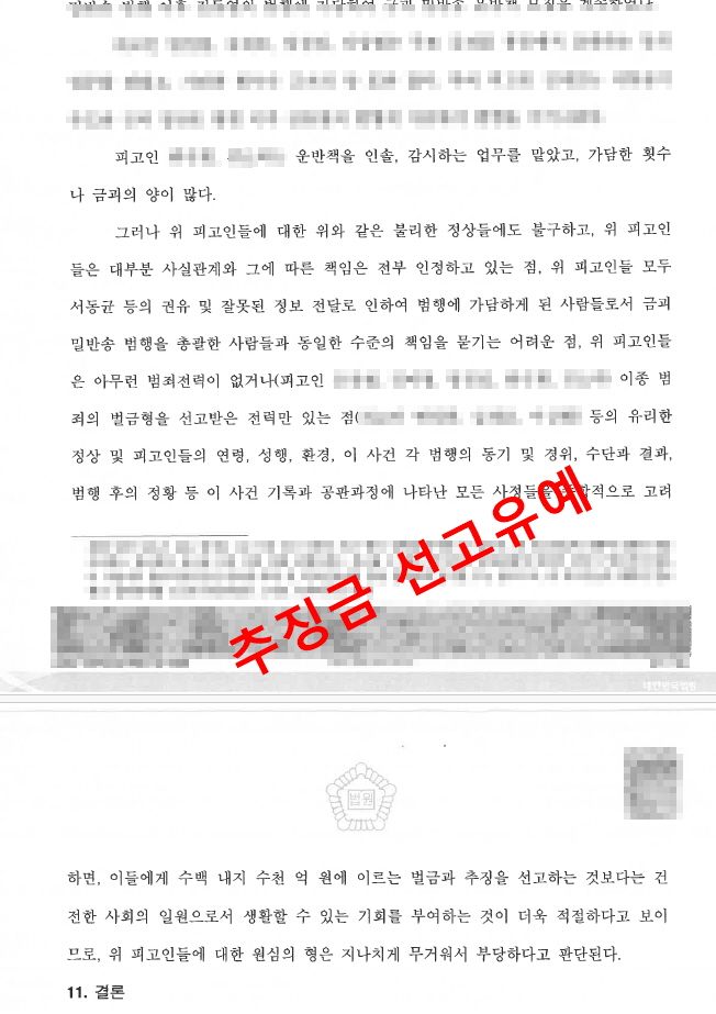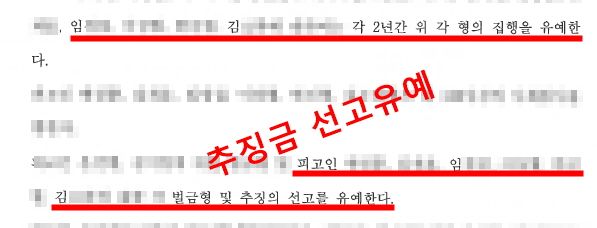 그 결과 항소심은 윈심 판결을 파기하였고 수백억원 상당의 추징금에 대해서도 선고유예를 하였습니다.
